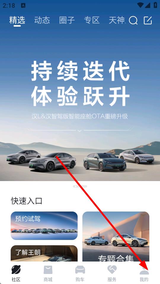 1、打開比亞迪云服務(wù)app,進入首頁后點擊底部我的選項。