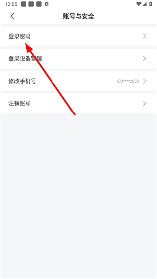 3、在賬號與安全頁面,點擊登錄密碼選項,進入登錄密碼頁面。