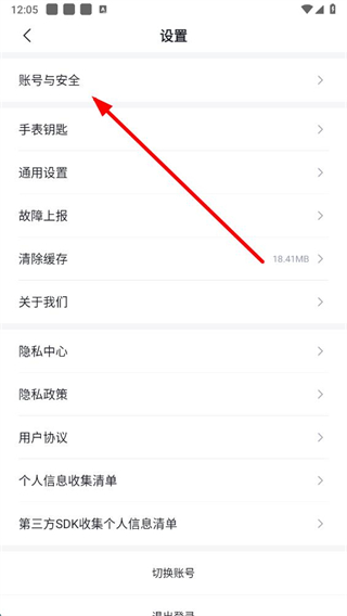 2、在設(shè)置界面,點擊賬號與安全選項,進入賬號與安全頁面。