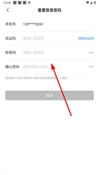 5、輸入驗證碼、新密碼和確認密碼后,點擊保存即可完成登錄密碼重置。