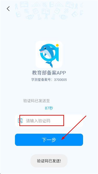 3、填寫(xiě)收到的驗(yàn)證碼,點(diǎn)擊下一步即可完成注冊(cè)。