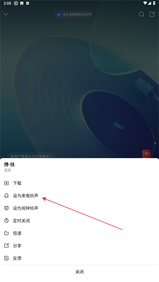 3、在下方彈出的菜單欄中,點(diǎn)擊設(shè)為來電鈴聲即可。