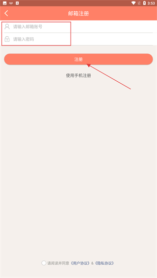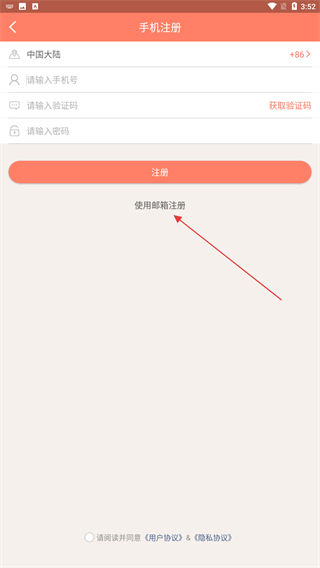 2、進(jìn)入注冊(cè)的頁(yè)面內(nèi),點(diǎn)擊使用郵箱注冊(cè)。