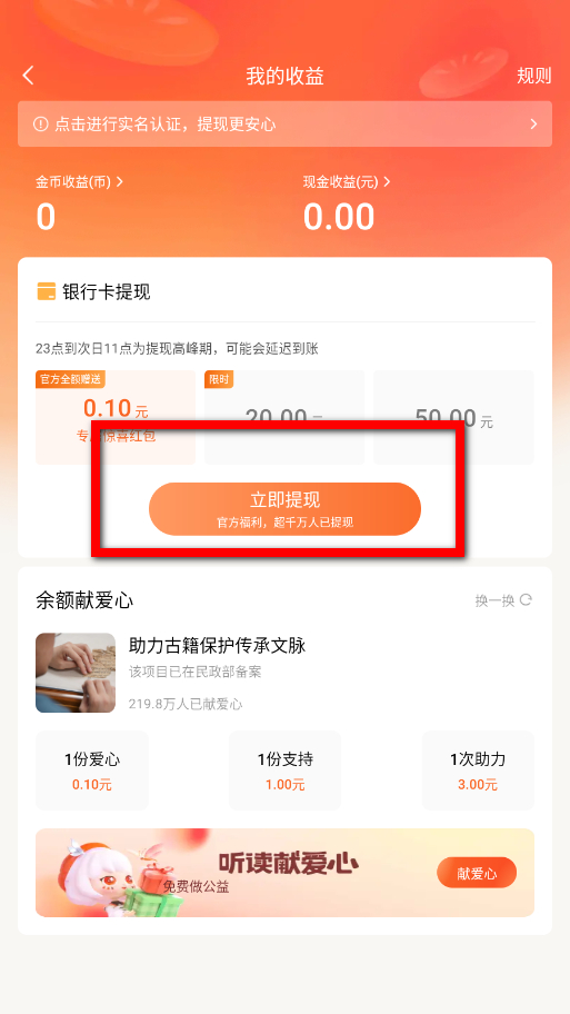3、在我的收益頁面,確認(rèn)收益金額滿足提現(xiàn)條件后,點(diǎn)擊立即提現(xiàn)按鈕,按照提示完成提現(xiàn)操作。