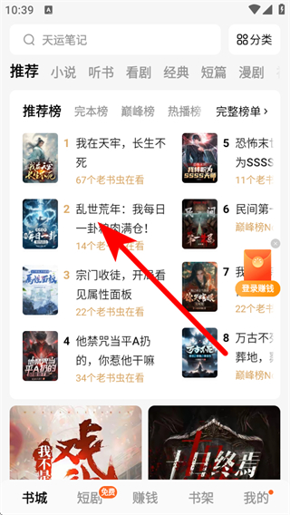 1、在番茄a(bǔ)pp書城頁面,選擇目標(biāo)小說。