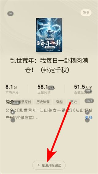 2、進(jìn)入小說詳情頁面后,左滑開始閱讀。