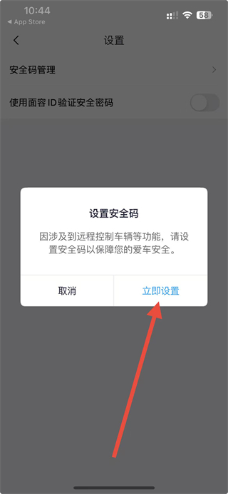 4、在提示框中,點(diǎn)擊立即設(shè)置按鈕,按照提示完成安全碼設(shè)置操作。