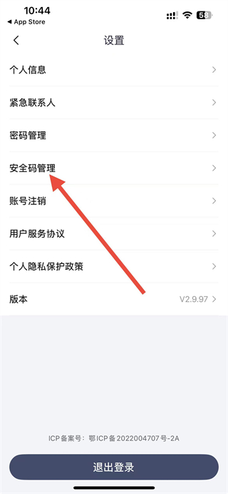 2、在設(shè)置頁面,點(diǎn)擊安全碼管理選項(xiàng),進(jìn)入安全碼管理頁面。