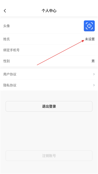 3、在設(shè)置頁面進(jìn)入個人中心,點擊姓氏選項。