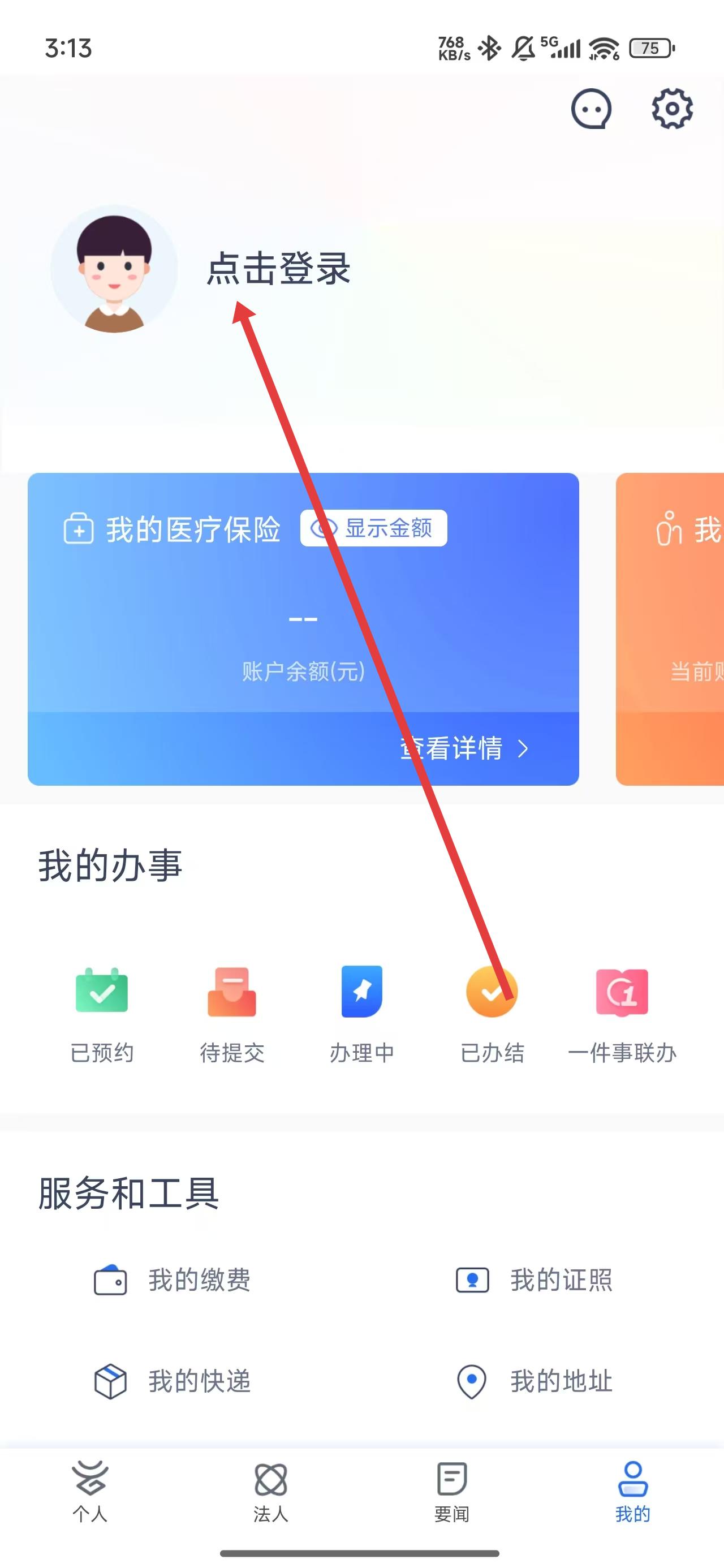 2、在進(jìn)入到我的主頁(yè)中,可以通過(guò)點(diǎn)擊登錄按鈕,準(zhǔn)備進(jìn)行登錄操作。