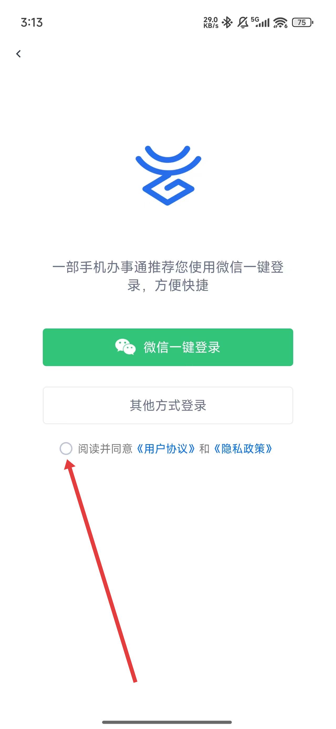 3、在跳轉(zhuǎn)到登錄頁(yè)面后,需要先點(diǎn)擊勾選下方閱讀并同意按鈕。
