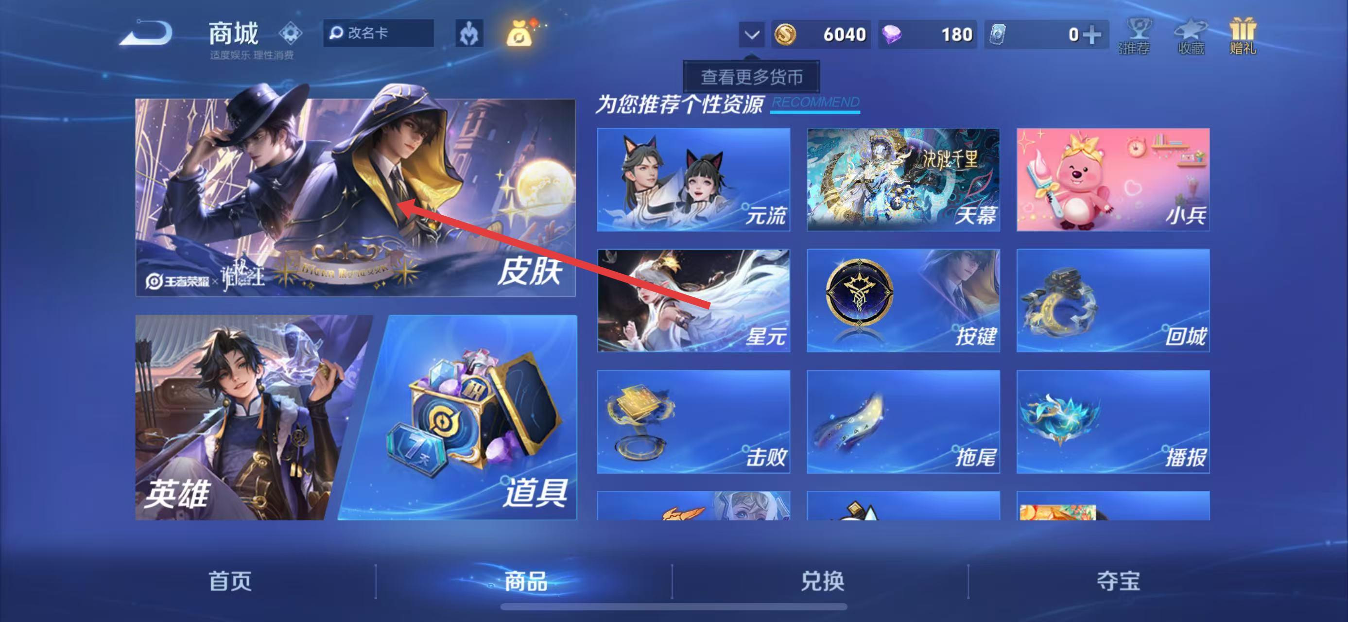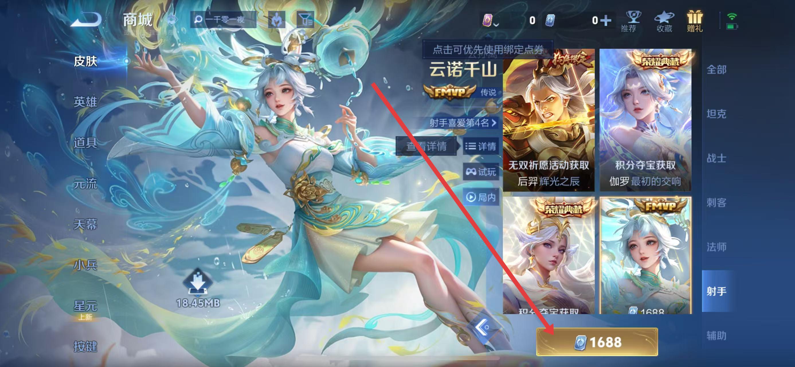 2、在商城頁面中,點擊皮膚選項,瀏覽各種英雄皮膚,找到想要購買的皮膚并點擊進入詳情頁。
