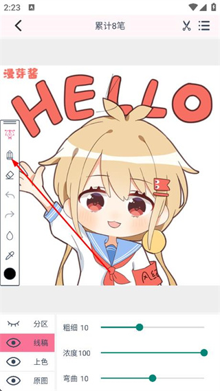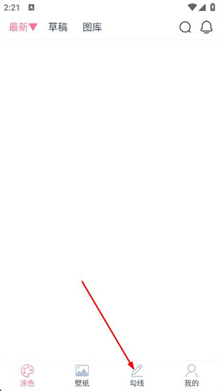 1、打開漫芽糖繪畫,點擊底部導航欄的勾線選項。