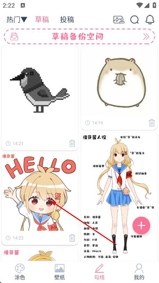 2、在勾線頁面中,選擇要描圖的草稿,點擊進入。