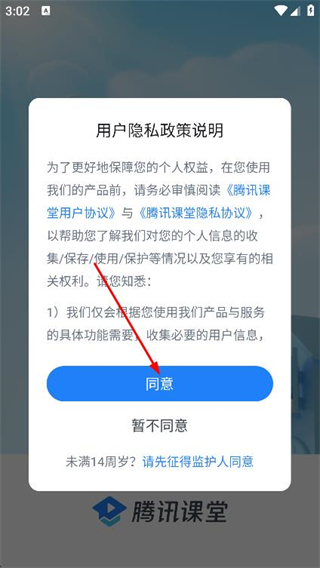 1、打開騰訊課堂,在彈出的窗口中點(diǎn)擊同意。