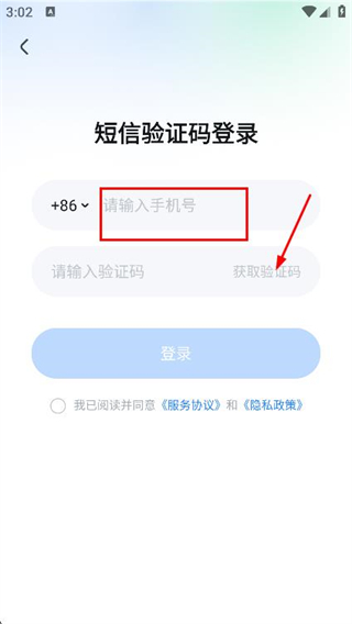 3、輸入需要登錄的手機(jī)號(hào),并點(diǎn)擊獲取驗(yàn)證碼。