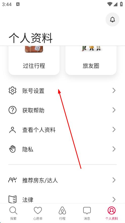 2、在個(gè)人資料頁(yè)面,找到并點(diǎn)擊賬號(hào)設(shè)置選項(xiàng)。