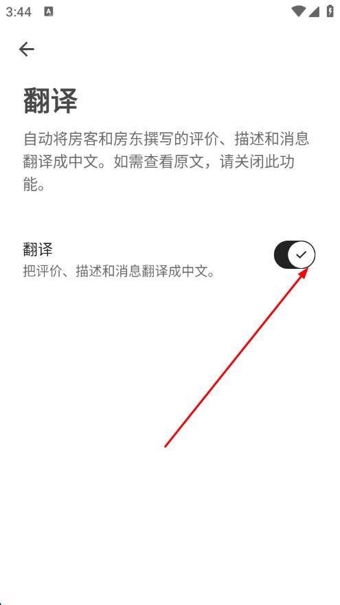 4、在翻譯設(shè)置頁(yè)面,找到翻譯開(kāi)關(guān),打開(kāi)開(kāi)關(guān)即可。