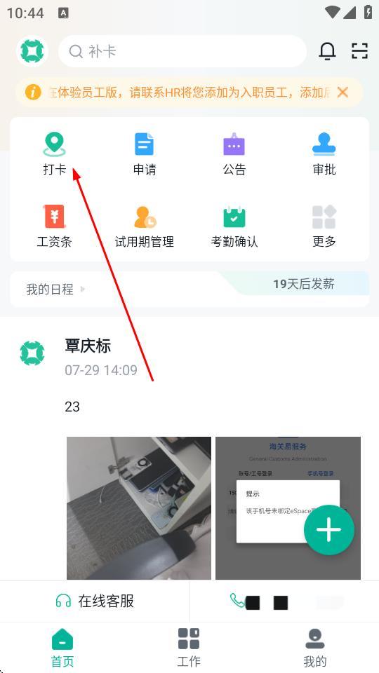 1、打開薪人薪事APP,在首頁(yè)點(diǎn)擊打卡圖標(biāo)。