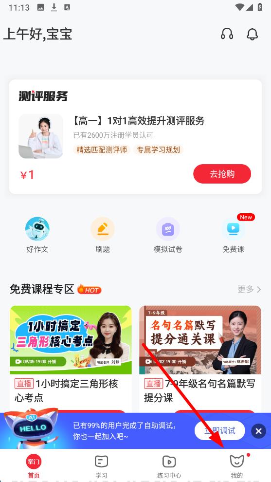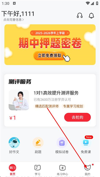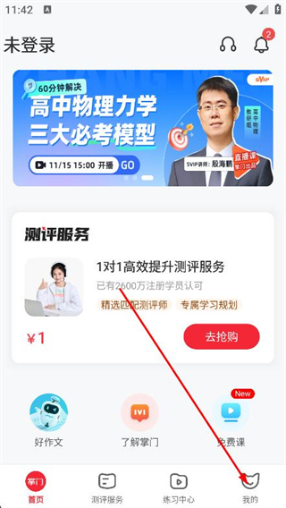1、打開(kāi)掌門(mén)1對(duì)1輔導(dǎo),點(diǎn)擊底部導(dǎo)航欄我的選項(xiàng)。