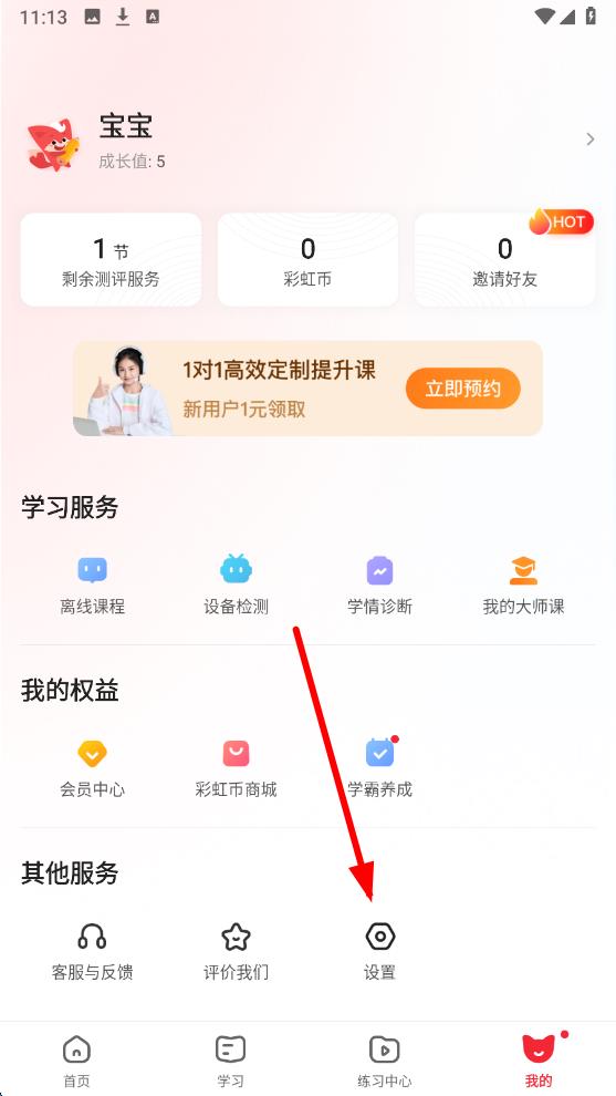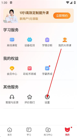 1、打開(kāi)掌門(mén)1對(duì)1應(yīng)用,點(diǎn)擊底部導(dǎo)航欄最右側(cè)的我的選項(xiàng),進(jìn)入個(gè)人頁(yè)面。