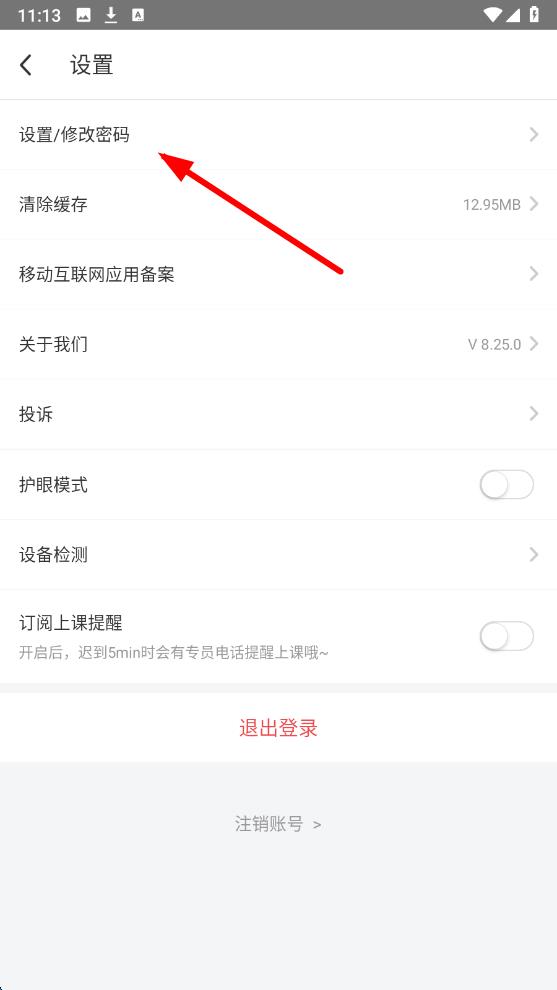 3、在設(shè)置界面里,找到并點(diǎn)擊設(shè)置修改密碼的選項(xiàng)。