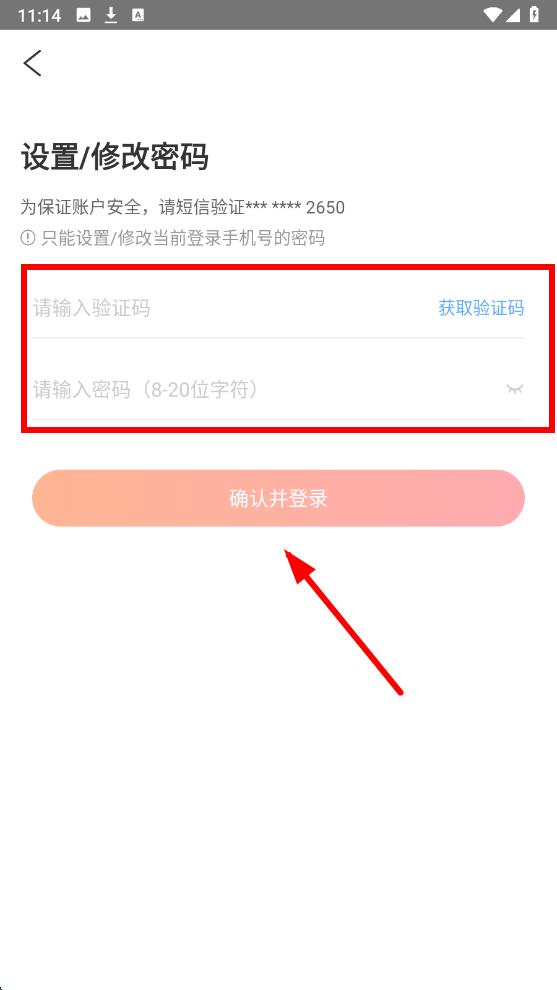 4、進(jìn)入設(shè)置修改密碼頁(yè)面后,獲取驗(yàn)證碼,再輸入新密碼,完成后點(diǎn)擊確認(rèn)并登錄,即可成功修改密碼。