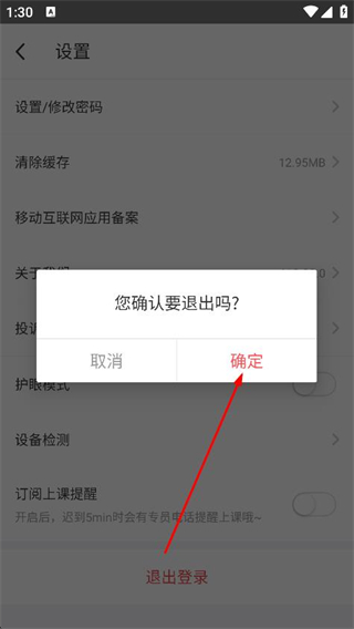 4、在彈出的提示框中,點(diǎn)擊確定即可完成退出登錄操作。