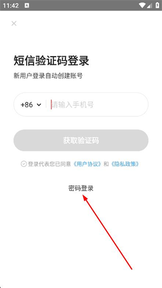 3、在登錄頁(yè)面,找到并點(diǎn)擊下方的密碼登錄選項(xiàng)。