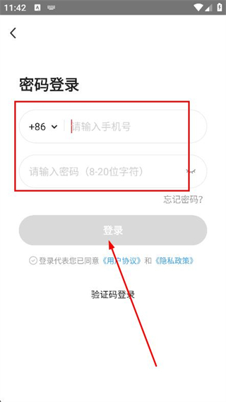 4、輸入手機(jī)號(hào)和密碼,點(diǎn)擊登錄即可完成登錄操作。