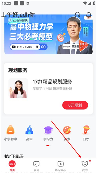 1、打開(kāi)掌門(mén)1對(duì)1輔導(dǎo),點(diǎn)擊底部導(dǎo)航欄的我的選項(xiàng)。