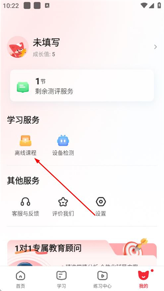 2、在個(gè)人頁(yè)面點(diǎn)擊離線(xiàn)課程,進(jìn)入離線(xiàn)課程頁(yè)面。