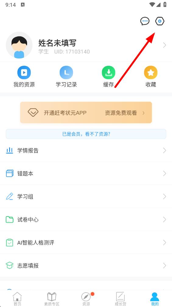 2、在我的頁面中,點(diǎn)擊右上角的設(shè)置圖標(biāo),進(jìn)入設(shè)置界面。
