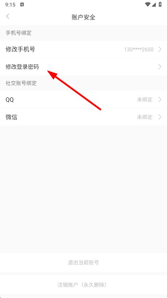 4、在賬戶安全頁面中,點(diǎn)擊修改登錄密碼選項(xiàng),按提示完成密碼修改操作。