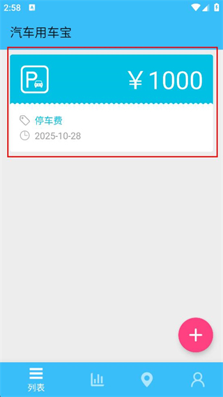 4、添加完成后,即可在列表頁面查看新增的停車費(fèi)消費(fèi)信息。