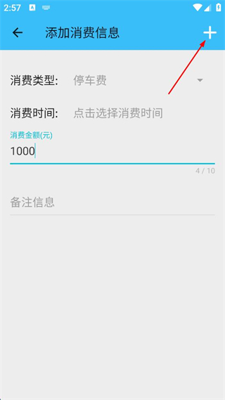 3、輸入消費(fèi)金額,點擊右上角“+”號按鈕。