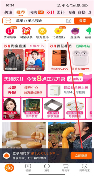 1、在進(jìn)入到淘寶首頁中,可以點(diǎn)擊下方立即登錄按鈕,進(jìn)行登錄操作。