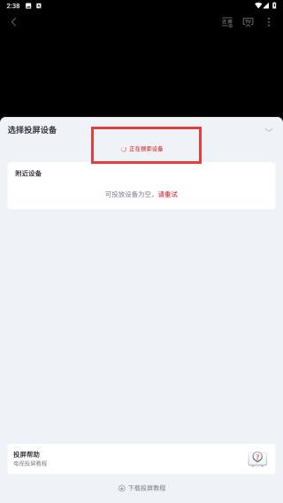 3、在彈出的選擇投屏設(shè)備頁面中,系統(tǒng)會(huì)自動(dòng)搜索同一WiFi網(wǎng)絡(luò)下的可投屏設(shè)備,找到你的電視設(shè)備后,點(diǎn)擊連接即可。