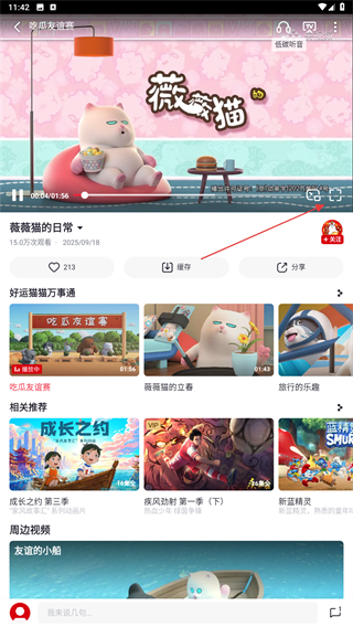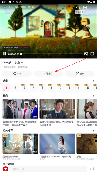 3、進(jìn)入播放的頁面內(nèi),用戶需點(diǎn)擊畫面下緩存的功能按鈕。