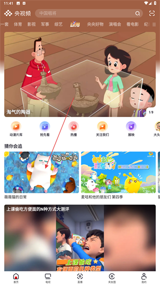 1、啟動(dòng)央視頻的應(yīng)用APP,在首頁上方點(diǎn)擊影視的標(biāo)簽。