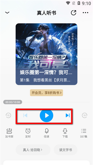 2、在聽書板塊,選擇真人聽書·精彩演繹中的書籍,進入書籍聽書頁面。