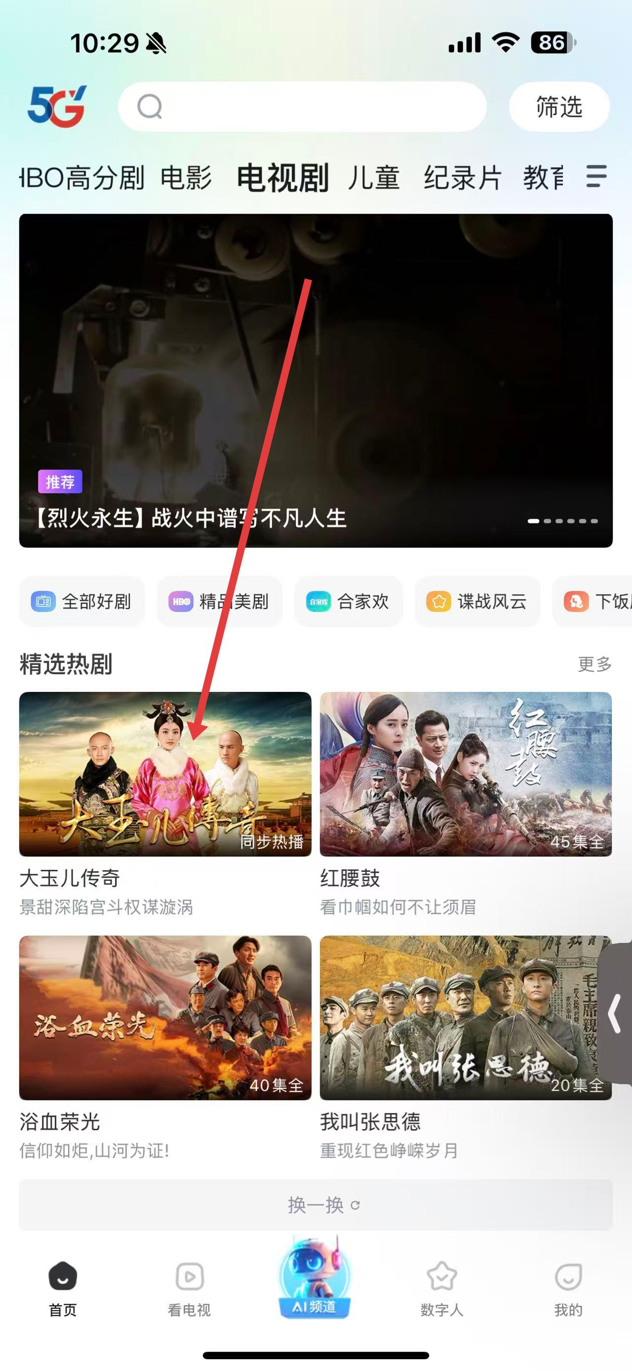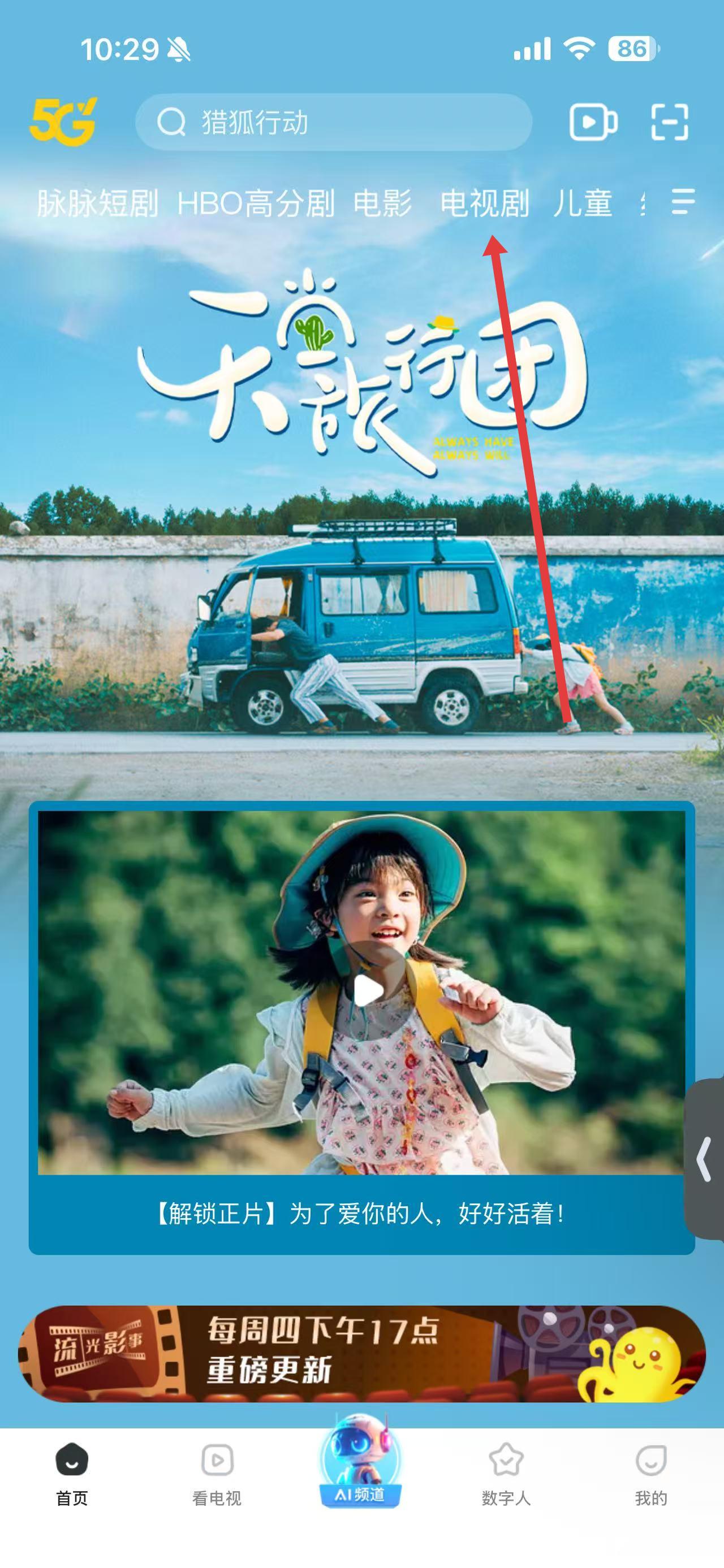 1、進入天翼超高清APP,進入首頁,選擇點擊電視劇。