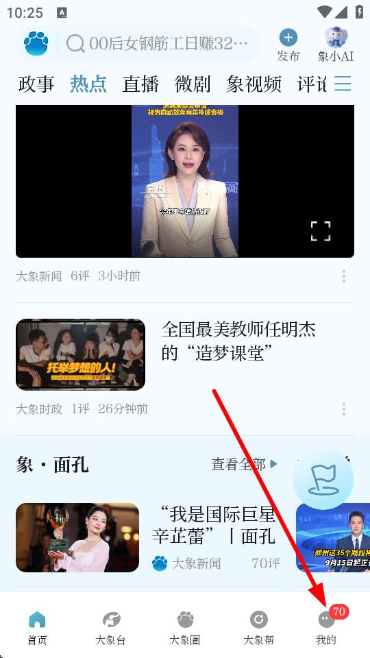 1、打開大象新聞App,點(diǎn)擊底部導(dǎo)航欄最右側(cè)的我的,進(jìn)入個(gè)人頁面。