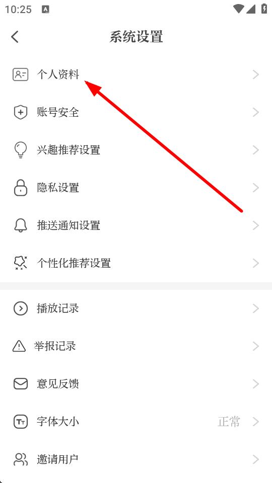 3、在系統(tǒng)設(shè)置界面中,點(diǎn)擊個(gè)人資料選項(xiàng),進(jìn)入編輯資料頁面。