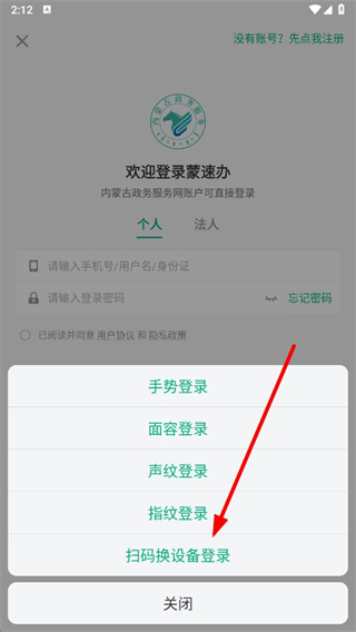 3、在展開的登錄方式菜單中,選擇掃碼換設(shè)備登錄選項,即可進入掃碼登錄的操作環(huán)節(jié)。