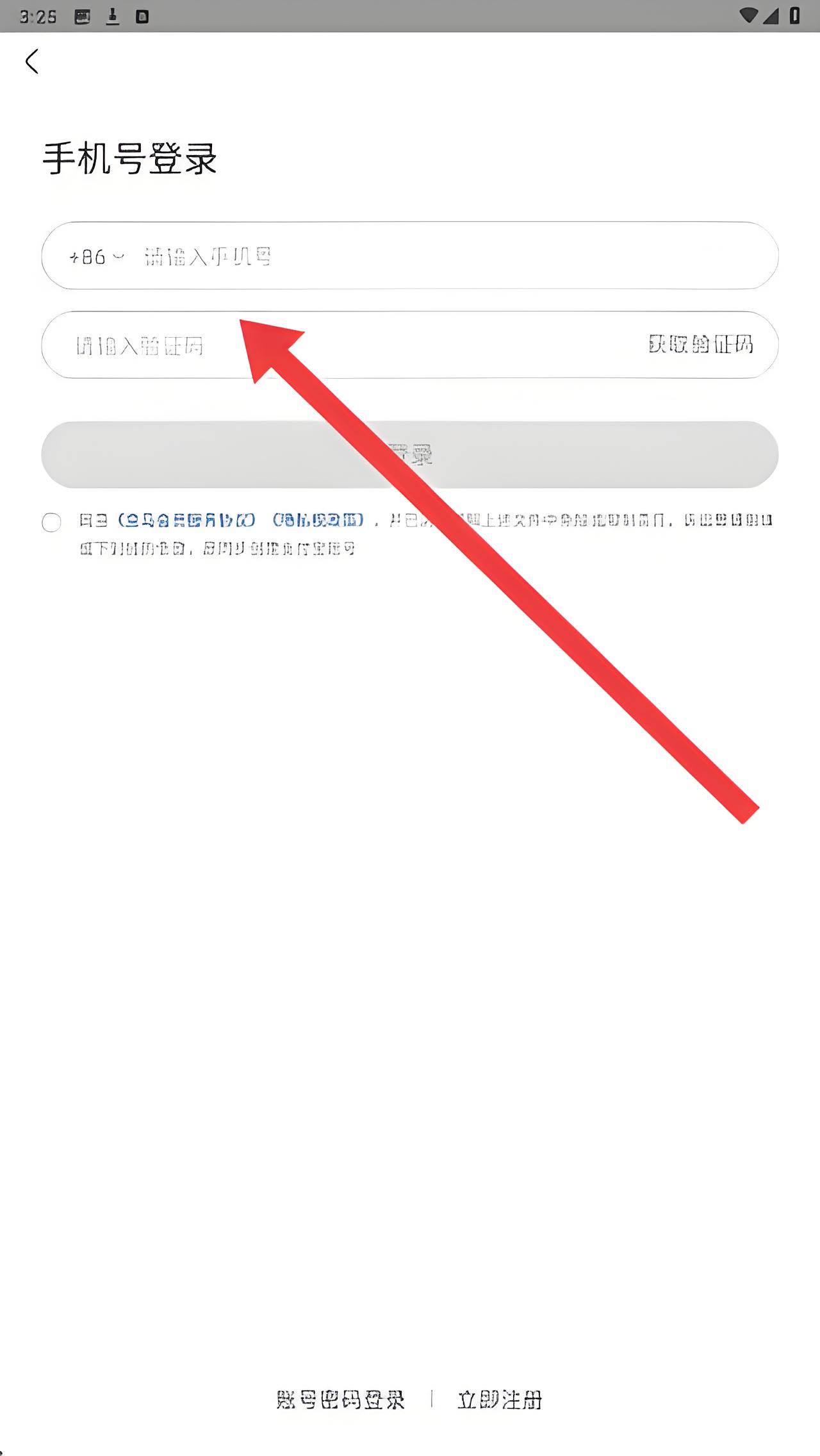 3、在手機號登錄頁面,需要按照箭頭指向操作點擊輸入框依次填寫手機號碼和驗證碼,進行賬號登錄。