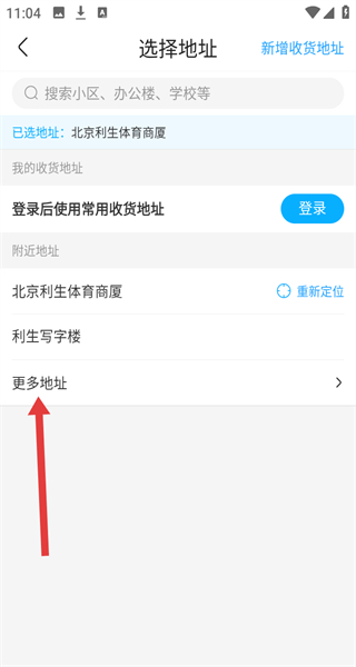 3、在進入到現(xiàn)在地址頁面中,可以點擊更多地址進行定位選擇。