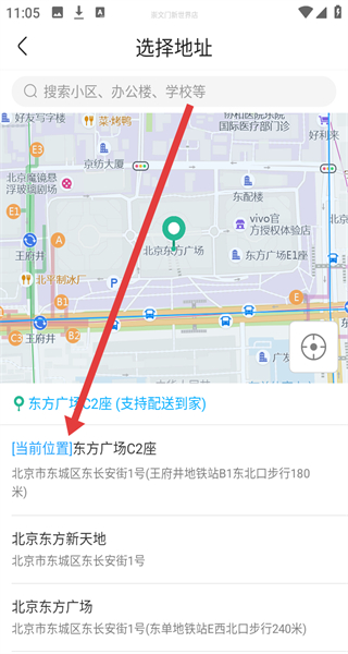 4、在進入到定位選擇地址頁面,可以點擊當前位置進行定位設置。