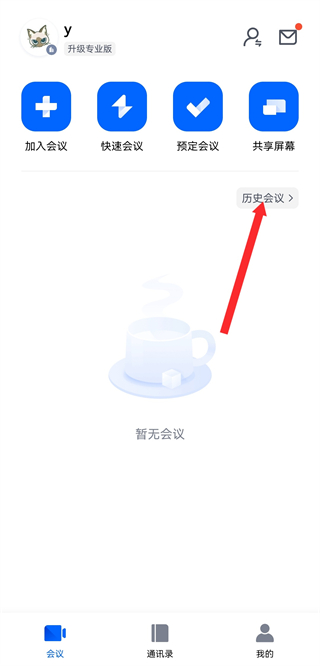 1、打開(kāi)騰訊會(huì)議APP,在會(huì)議的頁(yè)面需要點(diǎn)擊歷史會(huì)議。