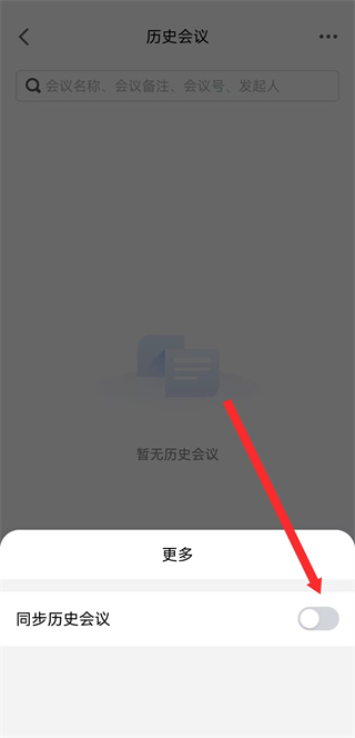 3、在更多選項(xiàng)中,將同步歷史會(huì)議的開(kāi)關(guān)開(kāi)啟,完成開(kāi)啟操作。
